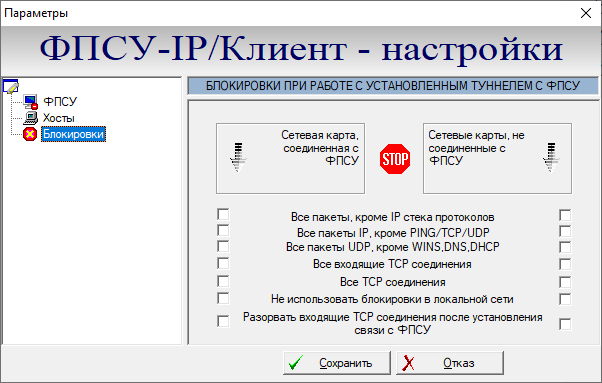 Настройка блокировок пакетов при установленном VPN-туннеле с ФПСУ-IP |