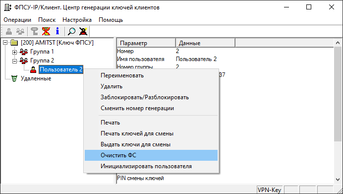 На экран будет выдан запрос на формат записи ключевых данных в устройство «VPN-Key».