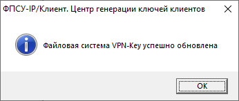 На экран будет выведено окно о загрузке файловой системы «VPN-Key» и сообщение об успешном обновлении, в котором требуется нажать кнопку «ОК».