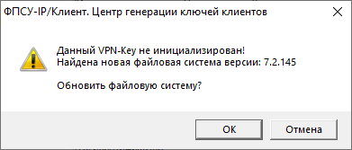 Для обновления файловой системы до указанной версии нажать кнопку «ОК». На экран будет снова выведено окно о загрузке файловой системы «VPN-Key» и сообщение об успешном обновлении, в котором требуется нажать кнопку «ОК».