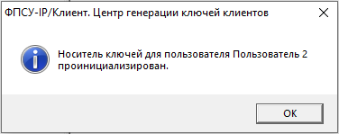 На экран будет выдано окно с сообщением об успешной инициализации пользователя.