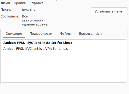 Перед установкой следует в обязательном порядке выполнить контроль целостности программного обеспечения (раздел «Контроль целостности инсталляционного пакета для Linux»). ФПСУ-IP/Клиент после установки может быть использован как программно-аппаратный, так и как программный Клиент. Внимание! При установке программного обеспечения, команды следует выполнять через sudo (от имени суперпользователя), или выполняющий установку пользователь должен входить в группу sudo/wheel операционной системы. Порядок установки (cкриншоты и пример инсталляции приводятся для ОС Ubuntu 22.04).