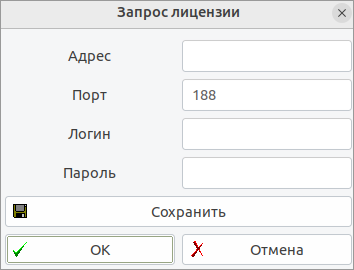 В открывшемся окне следует заполнить все поля. Адрес и порт сервера лицензирования, логин и пароль запрашивающего лицензию пользователя следует уточнять у администратора безопасности сети. Введенные данные можно сохранить в Программном Клиенте для последующих запросов, нажав клавишу «Сохранить». После заполнения полей следует подтвердить запрос к серверу, нажав клавишу «ОК». ФПСУ-IP/Клиент выполнит запрос к Серверу лицензирования. Если на Сервере лицензирования администратором безопасности разрешена выдача лицензии для указанного логина и пароля, то лицензия на Программный Клиент будет загружена по сети и установлена в ФПСУ-IP/Клиент. |