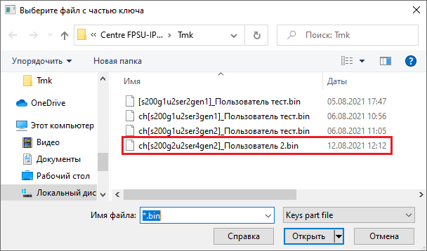 Установка ключей, подготовленных ЦГКК для VPN-профиля |