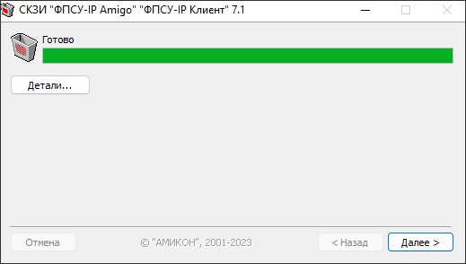Будет выполнен переход в окно прогресса удаления программного обеспечения, по завершению которого состояние перейдет в статус «Готово». Нажмите кнопку «Далее >» для продолжения