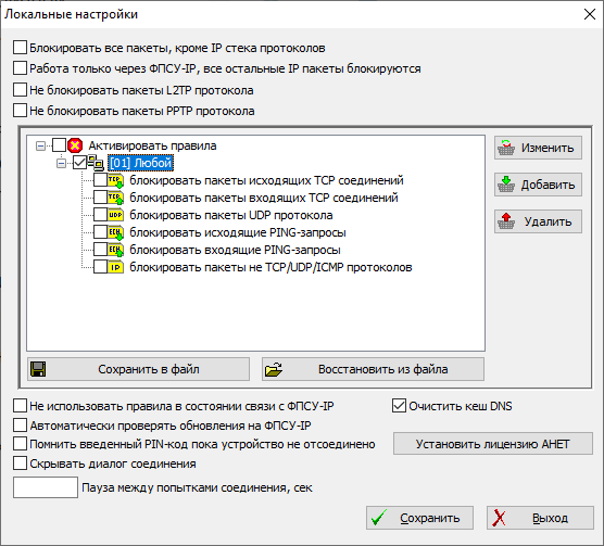 Настройка локального межсетевого экрана ФПСУ-IP/Клиента |