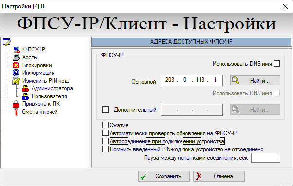 Настройка подключения к ФПСУ-IP |