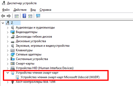 2. Проверить, закончилась ли установка драйвера успешно, можно через меню диспетчера устройств компьютера. При подключенном VPN-Key в диспетчере должен присутствовать объект «Устройство чтения смарт-карт».