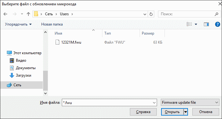 Файл с обновлением микрокода будет выслан в ответ на сообщение на адрес отправителя электронного письма. Микрокод представляет из себя файл с расширением *.FWU, прикладываемый к ответу на e-mail запрос. На него необходимо рассчитать контрольную сумму при помощи входящего в состав программного обеспечения Клиента программного модуля контроля целостности файлов WinFPSUhash, и сверить с эталонным контрольным значением в формуляре на СКЗИ. Кнопка «Обновить» открывшегося окна служит для указания *.FWU файла и запуска процедуры обновления микрокода устройства VPN-Key. После нажатия кнопки «Обновить», откроется системное окно выбора файла, где необходимо указать месторасположение полученного *.FWU файла, содержащего обновление микрокода.