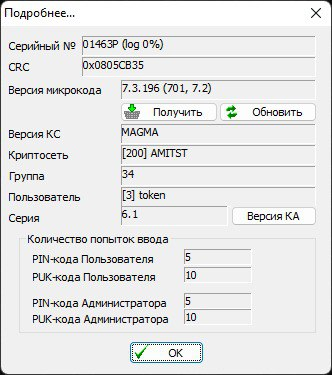 Микрокод устройства VPN-Key может быть обновлён администратором VPN-Key вручную, при наличии *.FWU файла с обновлением микрокода. Файл *.FWU должен быть получен доверенным способом от разработчика или организатора Криптосети Клиентов. На файл с обновленной версией микрокода должны быть рассчитаны контрольные суммы программой контроля целостности файлов winfpsuhash.exe и сравнены с предоставленными разработчиком эталонными контрольными суммами. Для обновления микрокода в окне регистрации пользователя необходимо нажать кнопку «Подробнее». Кнопка «Получить» открывшегося окна служит для формирования e-mail запроса к разработчику на обновление микрокода. При нажатии кнопки «Получить» с помощью настроенного в системе почтового клиента по умолчанию будет сформировано почтовое сообщение на адрес updates@amicon.ru с запросом обновления микрокода. Следует учитывать, что в случае отсутствия настройки e-mail клиента в операционной системе по умолчанию, то сообщение не будет сформировано.