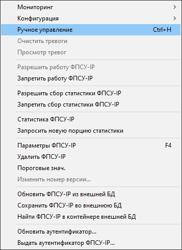 1. В контекстном меню ФПСУ-IP выбрать команду «Ручное управление».