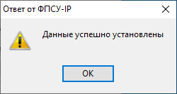 После того, как информация на ФПСУ-IP обновится на экран будет выдано сообщение об успешной смене ключа УА администратора на ФПСУ-IP.