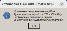 Для установки программного обеспечения УА ФПСУ-IP в РЕД ОС под Wine необходимо: