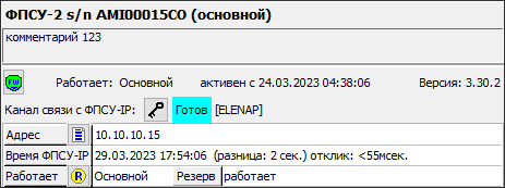 •режим работы. Если используется подсистема горячего резервирования, то указывает на то, какой ФПСУ-IP в данный момент является активным, основной или резервный;