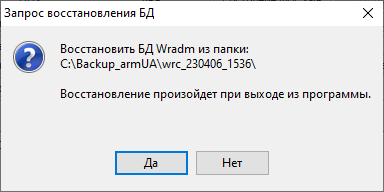 7. Будет запущена процедура восстановления базы данных из резервной копии и выполнен выход из программы УА ФПСУ-IP. После выхода из программы необходимо запустить её самостоятельно.