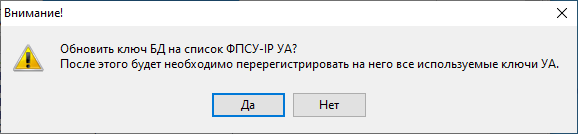 Для подтверждения обновления ключа доступа ко внешней БД следует нажать кнопку «Да».