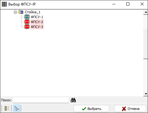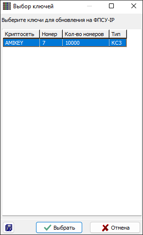 В открывшемся окне следует нажать кнопку «Выбор конфигурации». Откроется окно выбора конфигурации ФПСУ-IP для замены номера ключевой информации.