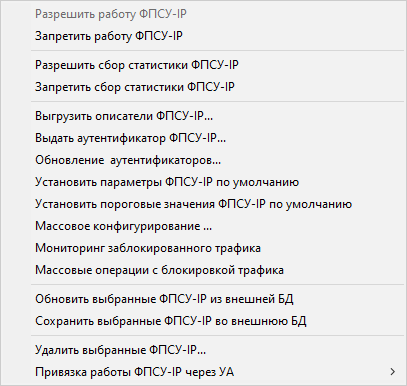 •Разрешить/запретить работу выбранных ФПСУ-IP c УА ФПСУ-IP;
