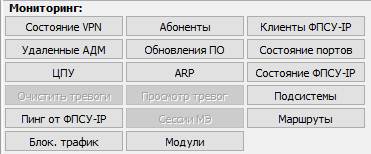 Для оперативного контроля состояния ФПСУ-IP, УА ФПСУ-IP предоставляет администратору список команд-запросов, которые могут быть посланы ФПСУ-IP после установления VPN-туннеля. Запросы отправляются нажатием соответствующей кнопки панели мониторинга: