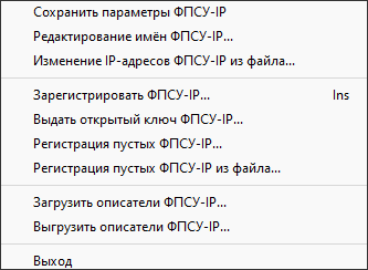 Пункт меню «ФПСУ-IP» содержит команды для работы с ФПСУ-IP: