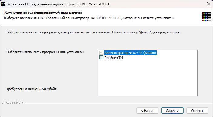 •«Администратор ФПСУ-IP (Wradm)», основное устанавливаемое программное обеспечение, обязательный выбор;