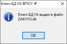 Использование внешней БД позволяет синхронизировать изменения описателей ФПСУ-IP с разных УА ФПСУ-IP. Подключение к внешней БД осуществляется по ключу шифрования БД администратора УА ФПСУ-IP. Для выдачи ключа шифрования БД на носитель необходимо выполнить команду главного меню «Ключ УА» → «Выдать ключ БД УА на диск», в открывшемся стандартном окне следует выбрать диск и каталог, в который будет выдан файл с ключом формата .dk.
