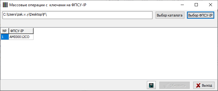 По нажатию кнопки «Обновить» ключи из каталога будут загружены на выбранные на предыдущем этапе ФПСУ-IP.