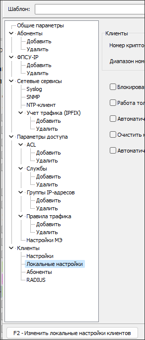 После выбора списка ФПСУ-IP, в конфигурацию которых требуется внести изменения, следует указать что именно будет меняться. Не все возможные параметры конфигурации, изменяемые в ручном режиме правки конфигурации, можно запланировать к массовому изменению. В левой части окна доступен определенный список изменений, которые выбираются администратором УА ФПСУ-IP в поле «Текущий режим». В качестве текущего режима внесения изменений могут быть выбраны: