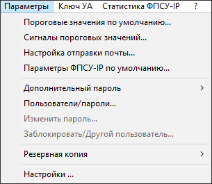 •переход в окно настроек УА ФПСУ-IP (подробнее см. пункт «Настройка УА ФПСУ-IP»). |