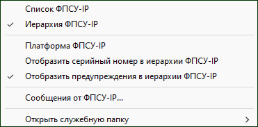•«Список ФПСУ-IP/Иерархия ФПСУ-IP» — команды, работающие как переключатель внешнего вида списка ФПСУ-IP, зарегистрированных в УА ФПСУ-IP. Список ФПСУ-IP представляет собой обычный не иерархический список, Иерархия ФПСУ-IP отображает зарегистрированные ФПСУ-IP в виде дерева каталогов, состоящего из корневого раздела и добавляемых вручную администратором УА ФПСУ-IP, по мере необходимости, новых разделов;