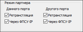 «Режим партнера». В этом поле требуется установить флаги разрешенных режимов работы с партнерами-абонентами (подробнее см. руководство по эксплуатации ФПСУ-IP).