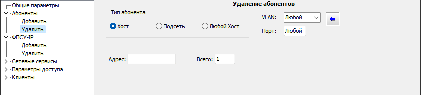 •«Всего» - поле позволяет добавить группу хост-абонентов с одинаковыми дополнительными параметрами, IP-адреса которых начинаются с указанного;