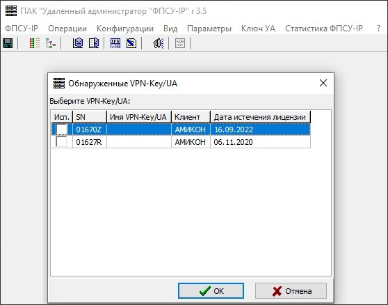 В открывшейся вкладке установить флаг «Разрешить работу с несколькими УА одновременно». При необходимости может быть задан администратор УА по умолчанию. Файлы лицензий всех подключенных к компьютеру VPN-Key/UA должны быть в наличии в подкаталоге LIC рабочего каталога УА ФПСУ-IP (см. пункт «Первый запуск УА ФПСУ-IP c VPN/Key UA»). При запуске УА после перезагрузки на экран будет выдано окно со списком подключенных к компьютеру VPN-Key/UA.