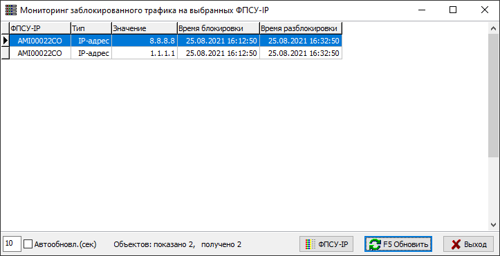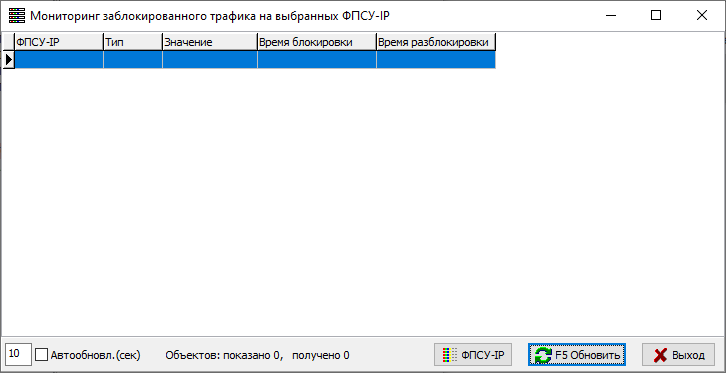 В списке отобразится информация о заблокированном трафике на выбранных ФПСУ-IP.