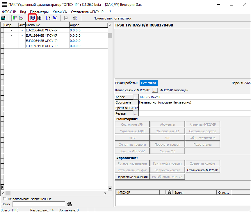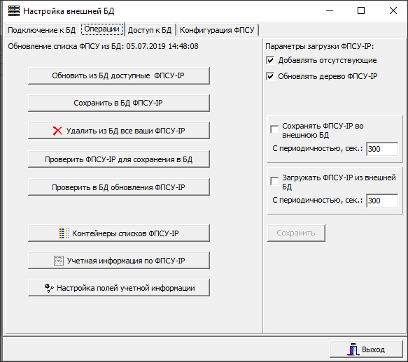 Все настройки внешней БД осуществляются в одноименном окне, открывающемся по нажатию кнопки