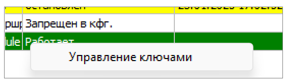 На экране появится окно, в котором предлагается выбрать нужный модуль, нажать на него правой клавишей мыши и нажать левой клавишей на появившейся кнопке «Управление ключами»: