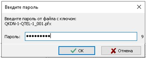 Для дальнейшей установки ключевых данных на ФПСУ-IP, администратор УА ФПСУ-IP должен их получить, и, нажав кнопку «Добавить ключ» и вызвав стандартное окно выбора каталога, указать УА ФПСУ-IP путь к ним. После выбора файла с ключевыми данными, УА предложит ввести пароль: