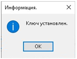После ввода пароля и нажатия кнопки «ОК» ключевые данные будут установлены на ФПСУ-IP, при этом на экран будет выведено соответствующее информационной окно:
