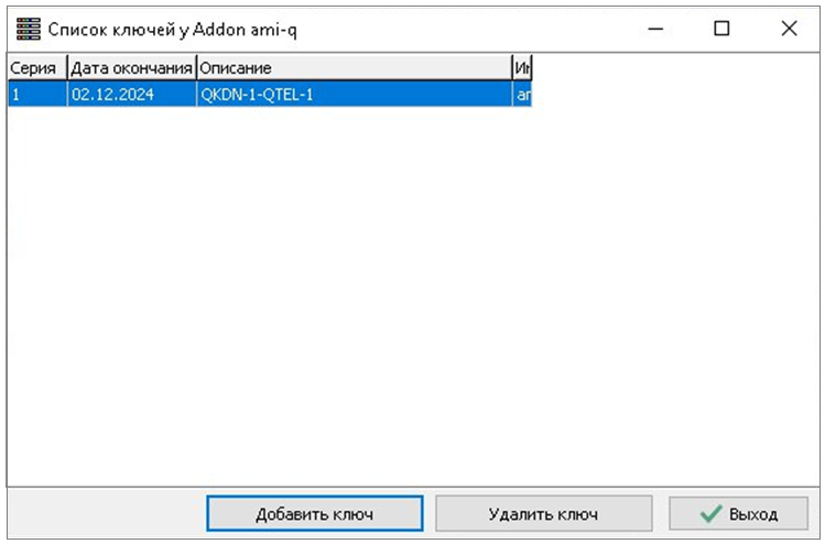 Сведения о добавленных ключевых данных отобразятся в окне «Список ключей»: