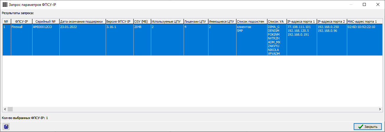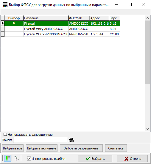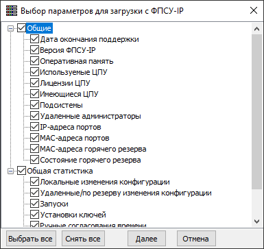 По нажатию кнопки «Выбрать» параметры будут загружены с ФПСУ-IP.