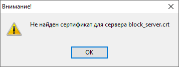 В случае отсутствия сертификатов при попытке запуска работы сервера обработки внешних запросов будет выдано следующее сообщение: