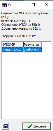 По нажатию кнопки «Да» соответствующие параметры будут загружены из внешней БД. Информация о произведенных действиях будет выведена в соответствующем окне.