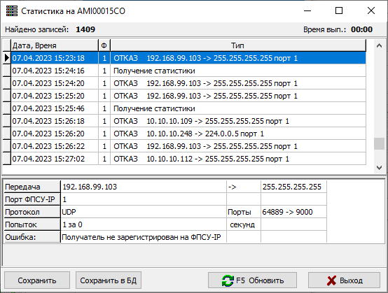 Кнопка «F5 Обновить» выполняет повторный запрос с последними указанными параметрами, и отображает новые записи статистики, которые могли попасть за прошедшее время под повторный запрос. Регистрационная информация о работе абонентов может быть конвертирована УА ФПСУ-IP в файлы txt-формата для последующей обработки сторонними программами. Следует обратить внимание, что в txt-файлы будут выведены те данные, которые были выбраны из хранилища по заданным администратором условиям поиска. |